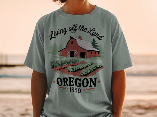 Living off the Land Oregon 1859 Barn Graphic T-Shirt