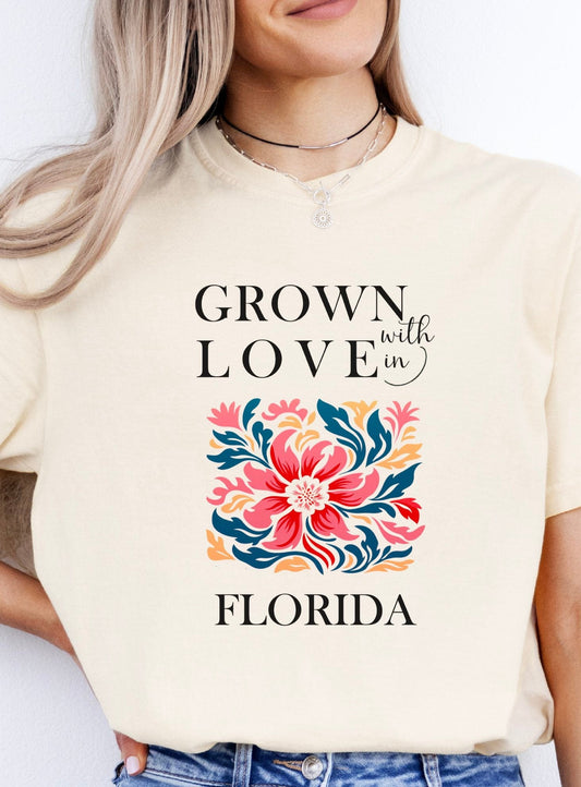 Grown with Love in Florida Floral Design T-Shirt