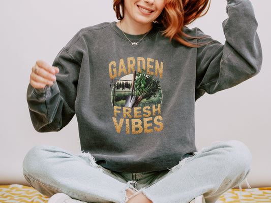 Garden Vibes Sweatshirts with Garden Tools and Carrots