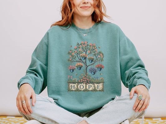 Hope Floral Tree with Hanging Baskets Sweatshirts