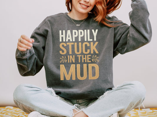 Happily Stuck In the Mud Slogan Graphic Casual Sweatshirt