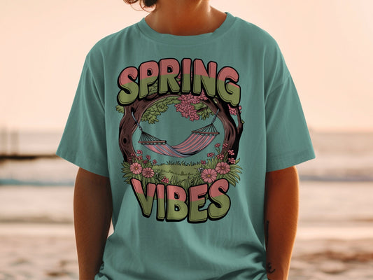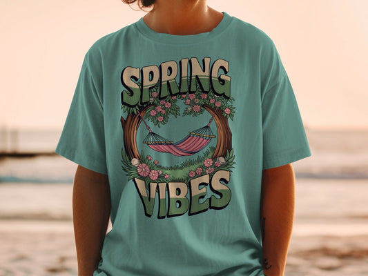 Spring Vibes Hammock and Flowers Graphic T-Shirts