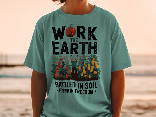 Battled in Soil Found in Freedom Work the Earth T-Shirts