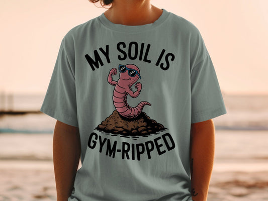 My Soil Is Gym-Ripped Cartoon Worm T-Shirts