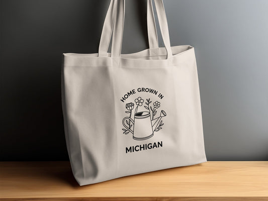 Home Grown in Michigan Watering Can Art Tote Bag