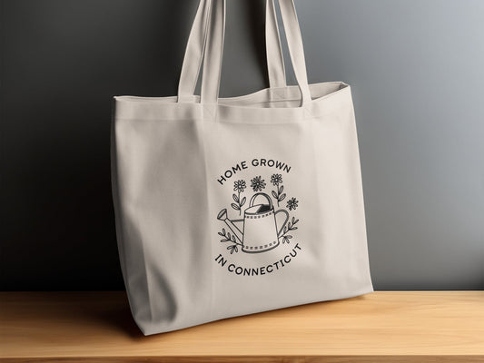 Home Grown in Connecticut Tote Bag with Floral Design